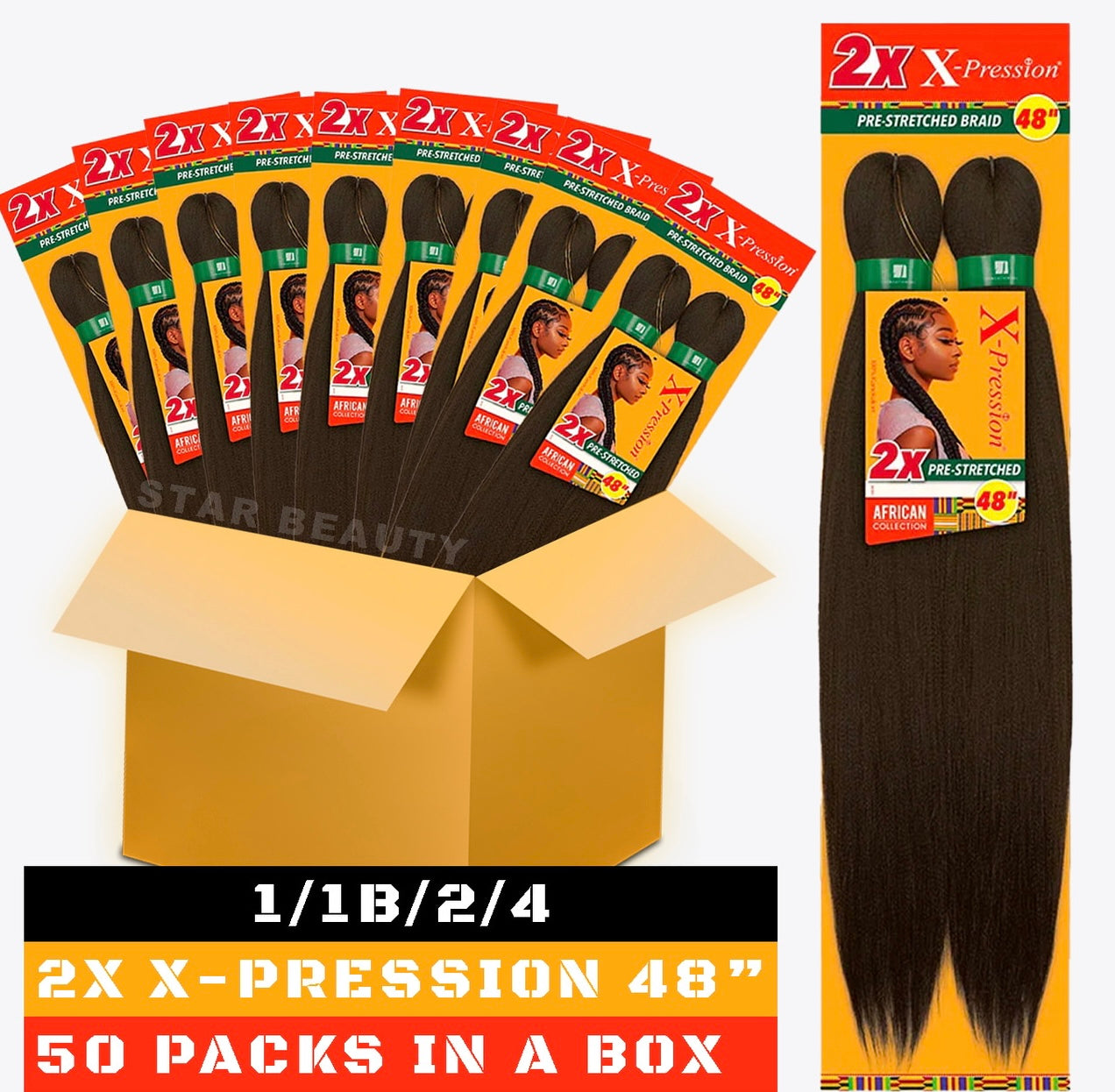 Sensationnal Braids XPRESSION 3X Pre-Stretched Braid 58 inches (50-pack, 1B)